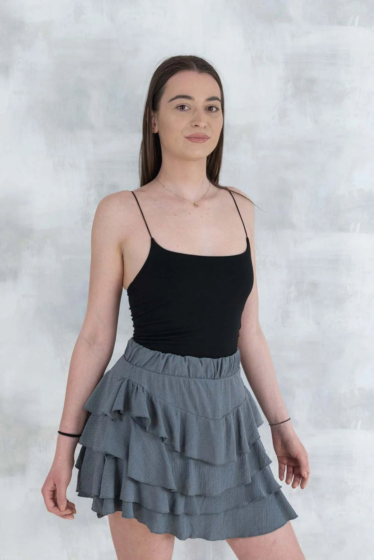 Fustă volane cu pantalon fin integrat - gri 6005-011