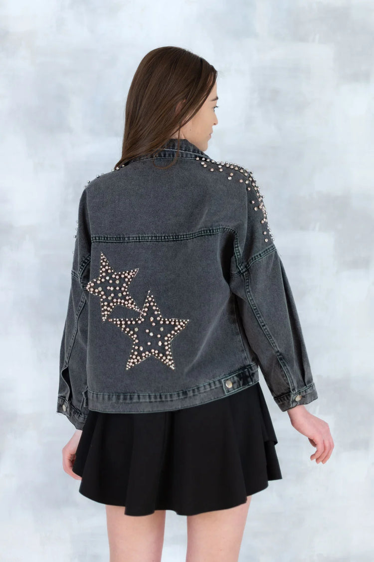 Jachetă denim cu aplicații stea – negru - Statement Urban 7003-012
